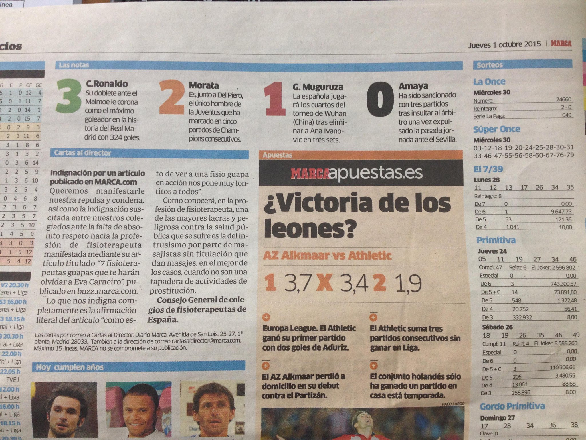 Articulo de mundo deportivo del 23/9/2015 titulado "Eva Carneiro tenía sexo con los jugadores del Chelsea":